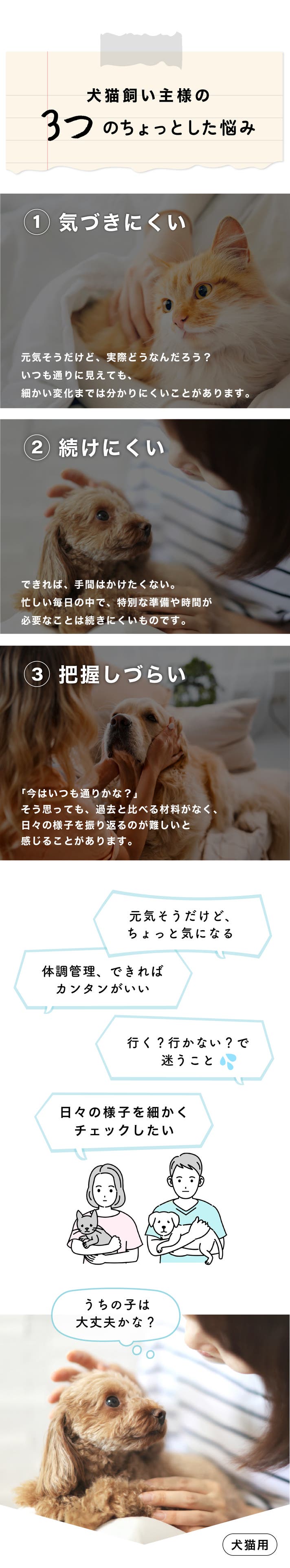 「うちの子の健康を、もっと手軽に、もっとやさしく見守れるように。」
