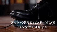 付属のフットペダル、ハンドボタンを使えば、マウス操作不要、ワンタッチでのスキャンが可能。フットペダルでのスキャンなら両手をフリーにできるので、ページをめくりながらのスキャンも楽々です。