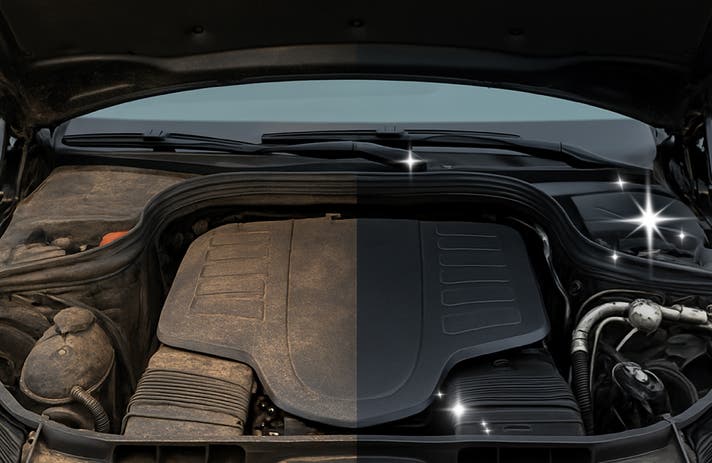 スプレーしてサッと拭き取るだけでエンジンルームの汚れもしっかり落とす!