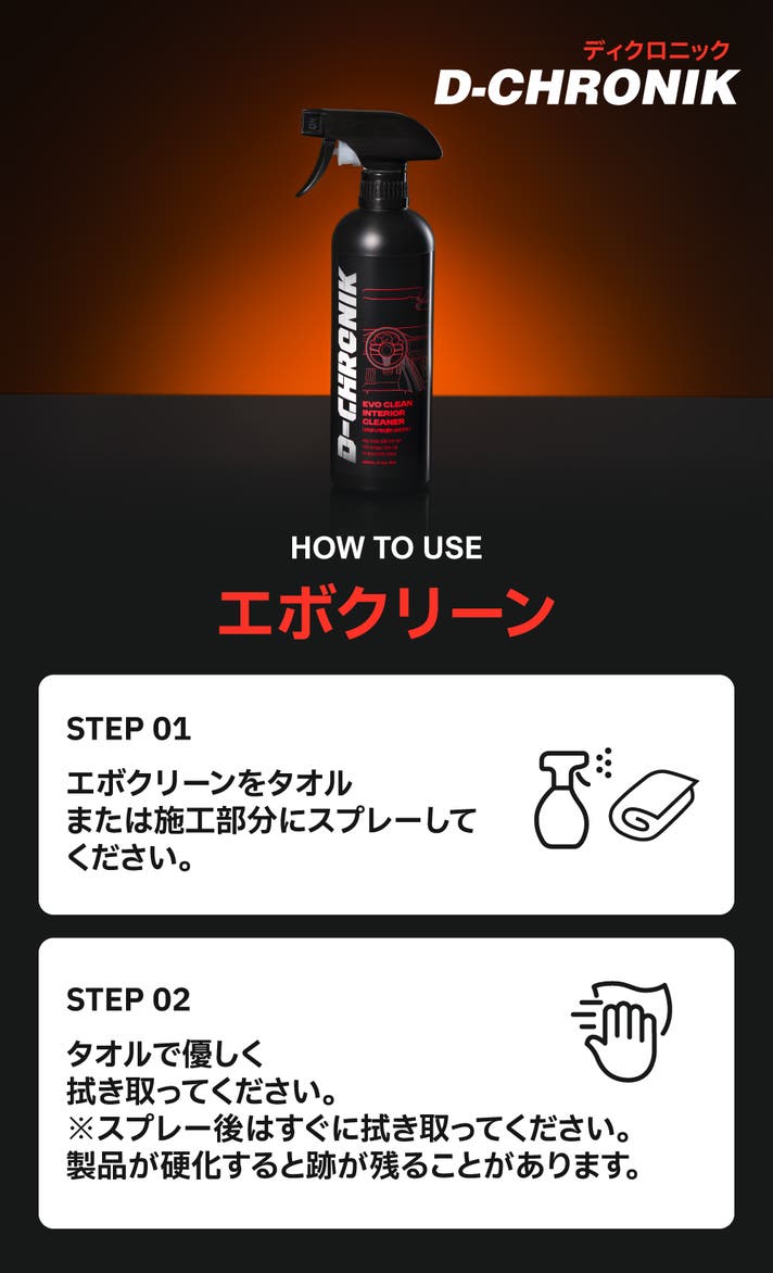 - 車内に染みついた汗・皮脂・臭いを、拭くだけで強力分解!レザーやプラスチックなどにも対応!