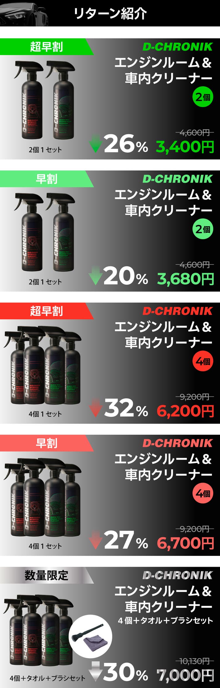 【早割】エンジンルーム・車内クリーナーx4個セット