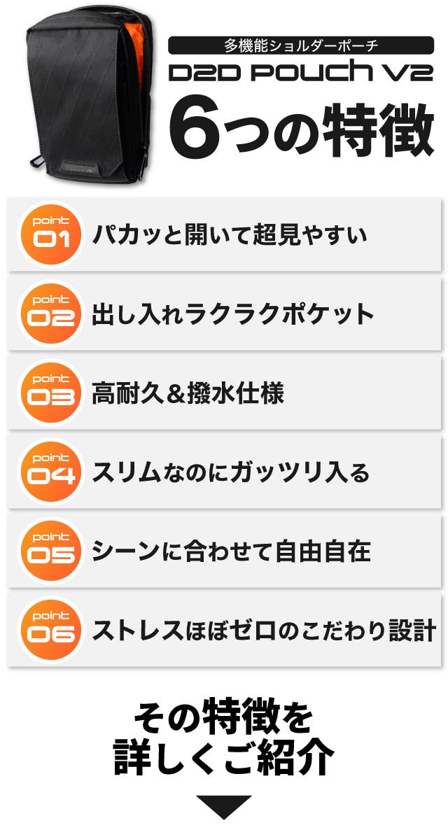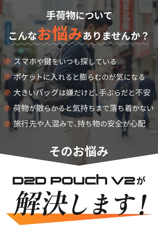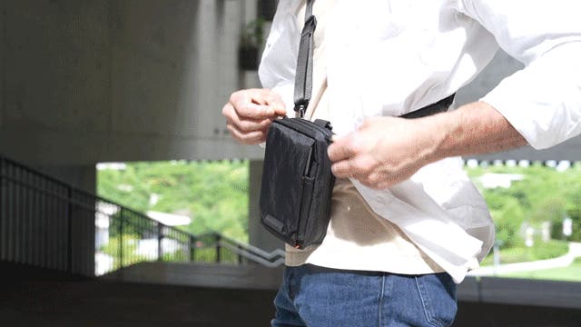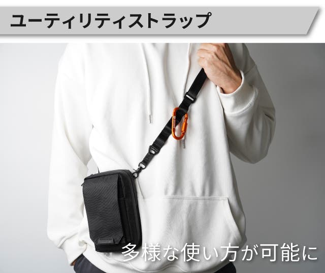 A:ユーティリティストラップを使うことで、D2D Pouch V2を「クロスボディバッグ」や「胸元固定型ショルダー」として使用可能です。また、ADD1Dシリーズのバックパックともモジュール連携できます。