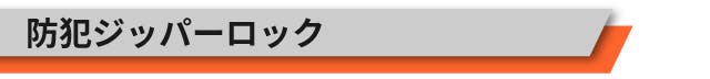 ファスナー同士を金属クリップで固定でき、不意の開閉を防ぐ機能を搭載しています。