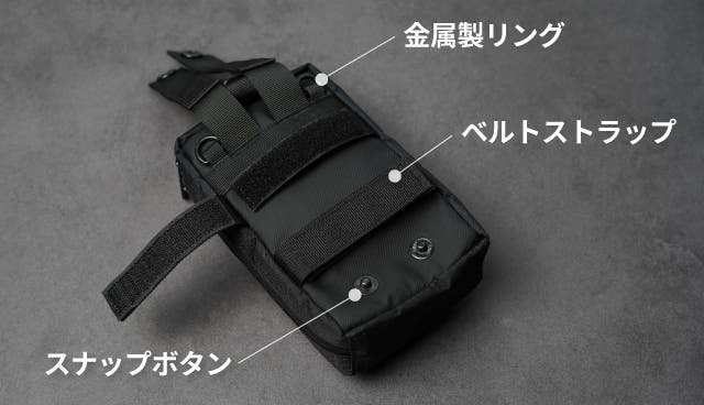 単体使用、リュックへの取り付け、ウエストポーチの3通りで使えるデザインです。