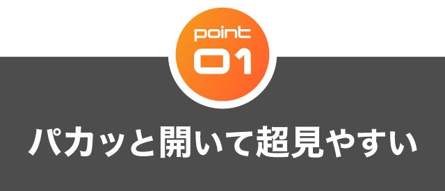 ワンアクションでパカッと開き、すぐに使える手軽さが魅力です。