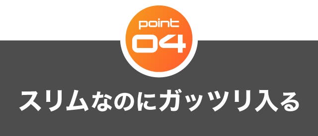 - 大きく開く広々設計で、必要なものをすぐに取り出せる。YKKジッパー採用で、開閉もスムーズ。