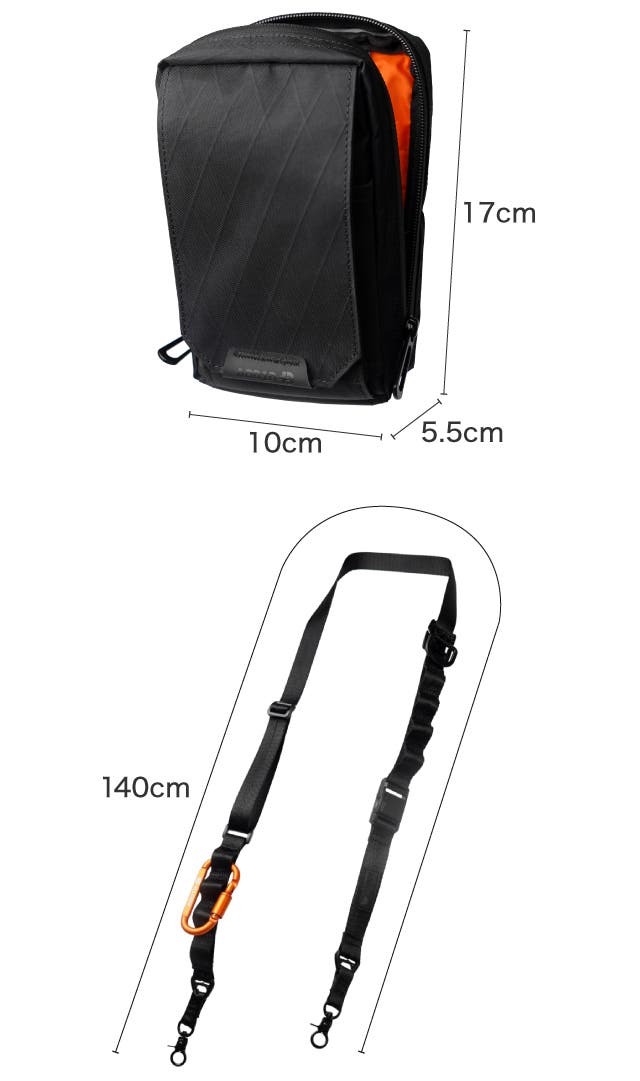 サイズ:本体 17cm x 5.5cm x 10cm / ユーティリティストラップ 2cm x 140cm