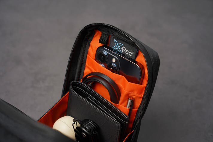 素材:本体 VX21 X-Pac/裏地 210Dナイロン(ハイビズオレンジ)/ファスナー YKK止水、マグネット=ネオジム磁石、他樹脂パーツ