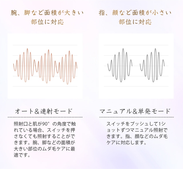 非侵入性IPL(フラッシュ式)パルス光脱毛技術を採用。サロンに行くことなく本格的なムダ毛ケア&美肌ケアができます。