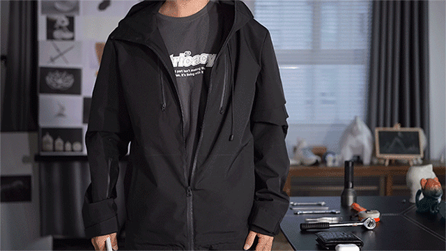 それをきっかけに、開発者は防風だけでなく、防水性能、保温性など共に優れるヒートジャケットを開発したいと決心しました。何度もの失敗を経験して、防水性能を確保するために防水性能、熱伝導と断熱性を兼備したグラフェン生地を使用することにし、ファスナーの強度も強化しました。グラフェン生地と放熱シートの組み合わせで、着膨れせずに確実な暖かさを得られます。表地のePTFE素材は風を散らして体に当たる空気を風だと認識できない程小さくします。それらの性能を合わせて作られたのが「D506」ヒートジャケットです。