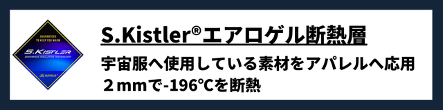 今回の製品には、エアロゲルを一般アパレルに開発・応用した「S.KISTLER®」及び「SUPIELD®」という素材を使用しております。