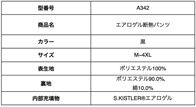 エアロゲル断熱パンツ(エアパンツ2)×1着