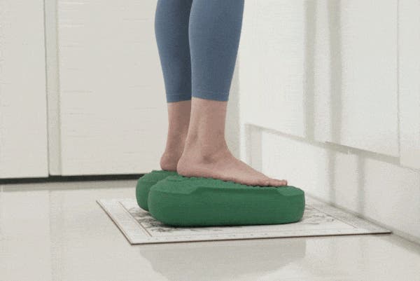突起型の指圧が苦手な方のために、韓医師の意見をもとに足裏のツボと同じ位置に突起を配置しました。 立っているだけでも足裏に刺激を与えます。