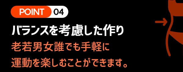 従来に比べ、運動する際に重心が取りやすくなり、老若男女誰でも手軽に運動を楽しむことができます。