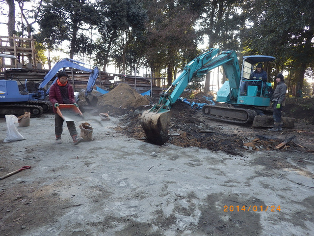 =数人で広い敷地を工事していた頃…水溜りだらけの駐車場の環境改善の様子=
