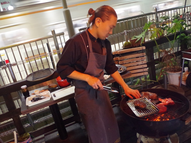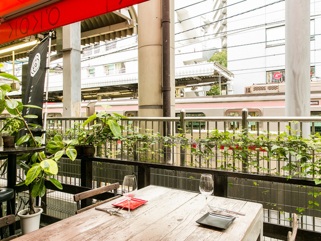当店には、東横線に隣接している、自慢のテラスがあります。
