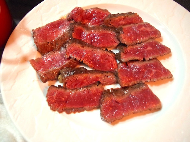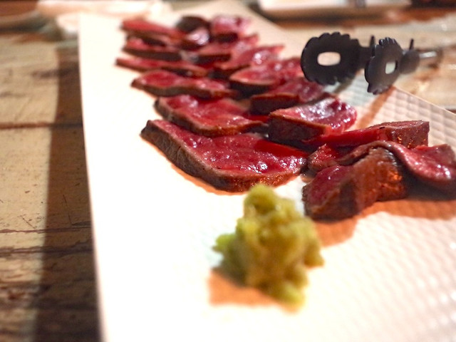 これぞ希少部位!後ろ足の付け根にある「シンタマ」の一部。肉質のキメこまやか、赤味の旨みが凝縮されてます。脂が少ないため自分で焼くとつい焼き過ぎてかたくしてしまったり。プロの技光る絶品です。