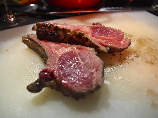いわゆるラムチョップ!くせなくジューシー。塊肉で焼いてから切るので、側面がこんなにやわらかく美味しそうにできるのです。