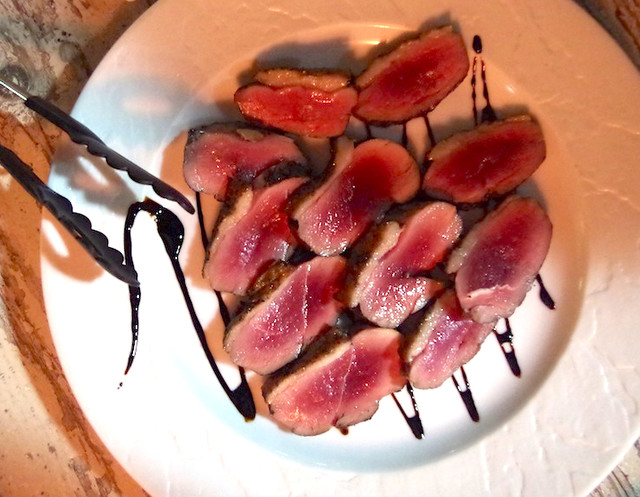 最初のシャルキュトリー盛り合わせで食べた鴨を思い出して、調理法による味の違いをたのしんでください!大きいまま炭火で焼いてこそのこの色です。