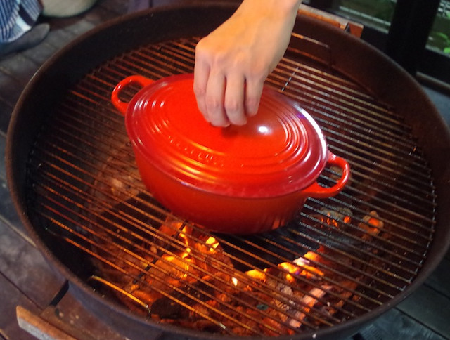 〆にはこちら!BBQ台のうえにルクルーゼ。