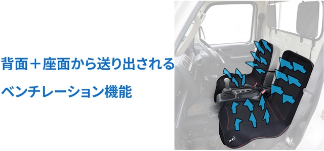 - 省エネ効果:座面背面からの送風により体感温度を下げる事ができるため健康的に省エネ走行!