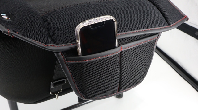 Wラッセル生地を採用!中身が見えるので収納したものが見えるようになっており、小物収納に便利なポケットとなります。
