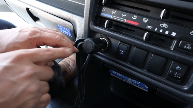 車のアクセサリー電源に差すだけで、かんたん起動します。
