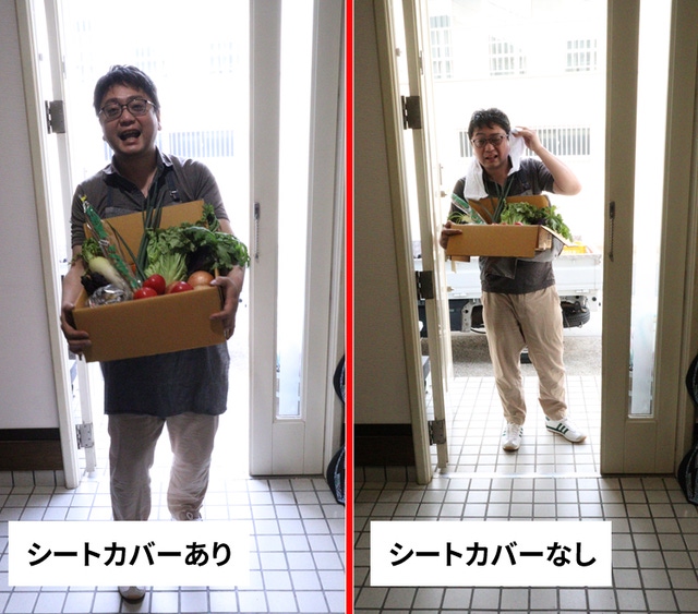 画像を見てのとうり、このシートカバーを使った時、使ってない時の印象を比較してみました。本製品を使用することによってお客様に会う時の印象、清潔感はとてもよくなります。