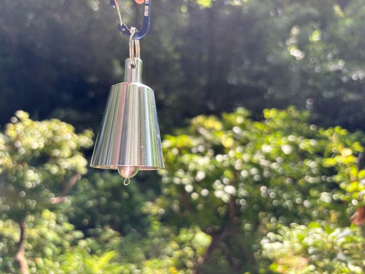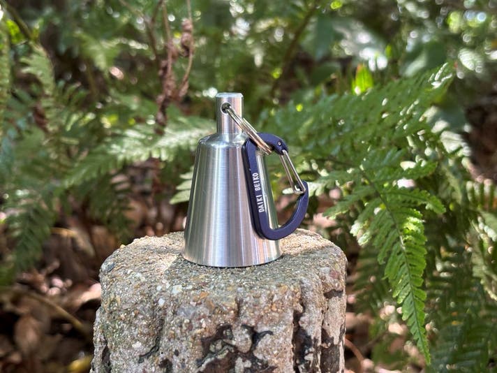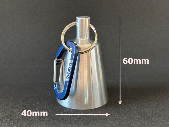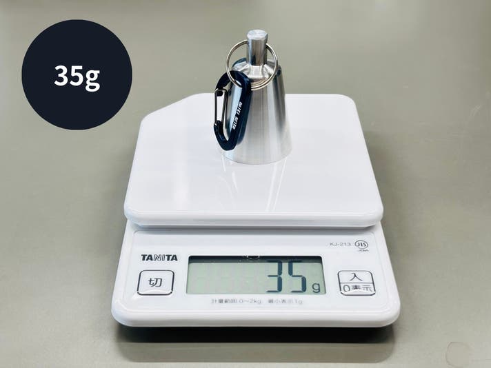 市販の熊鈴は真鍮製や鉄製が多く、重さが100g以上あるものも。DaiFeel ZERO は、わずか35g。