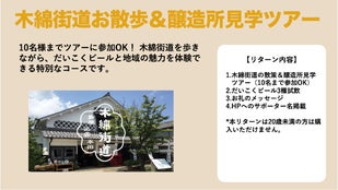 木綿街道を歩きながら、ビールと地域の魅力を体験できる特別なコースです。