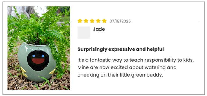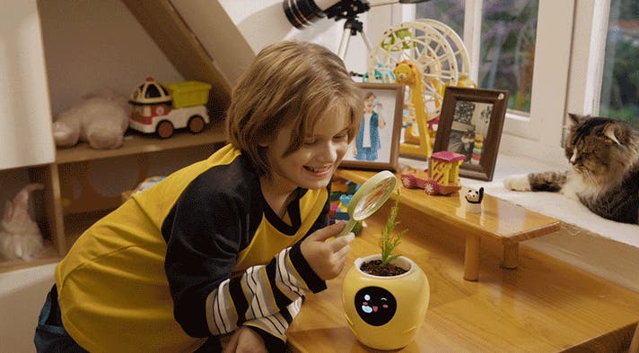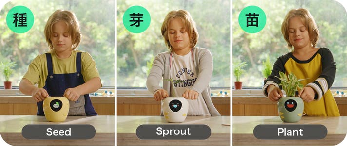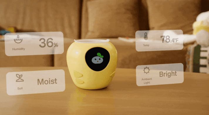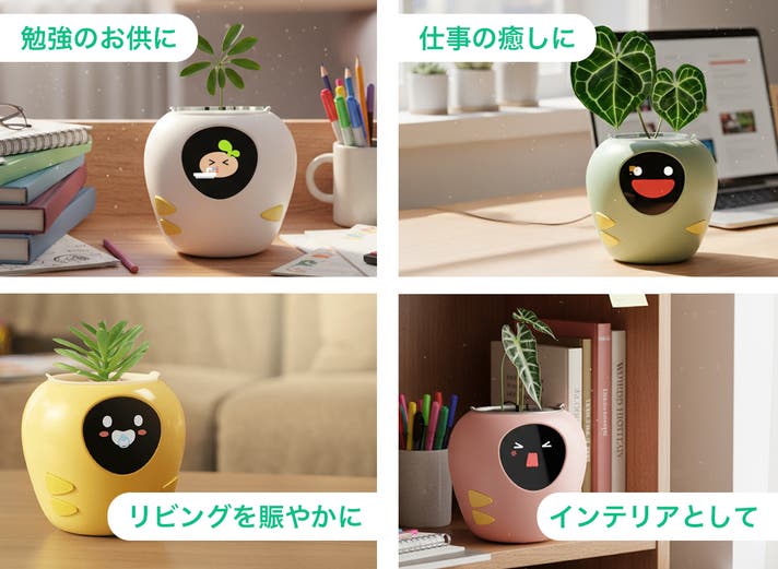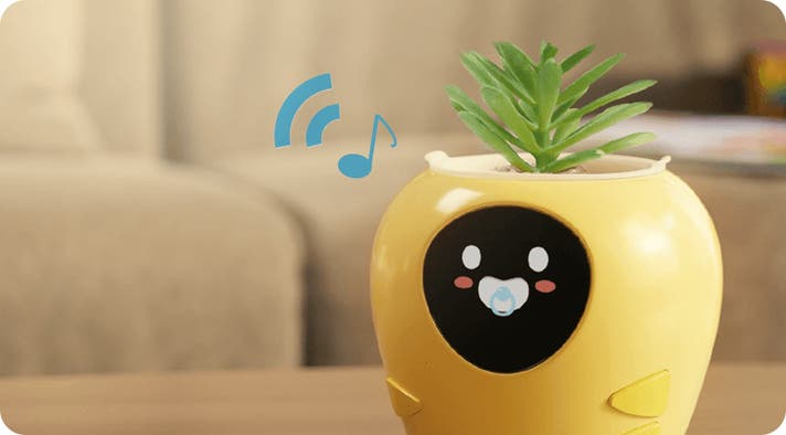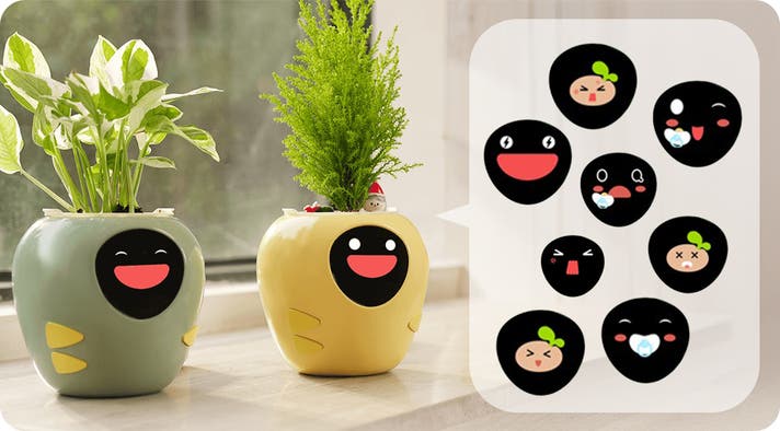 Plantbotは表情と声でお世話のサインをお知らせ。