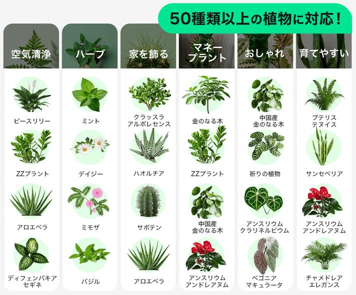 A. 50種類以上の植物データベースに対応しています。(今後追加予定あり)