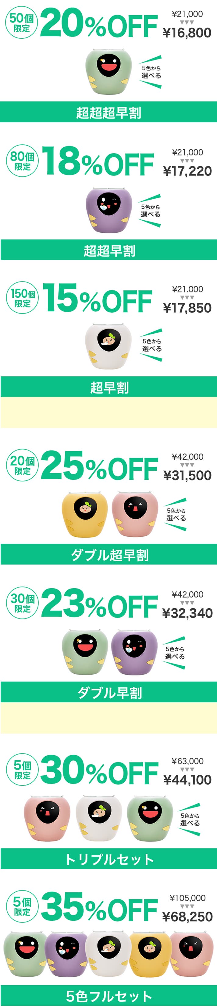 ※本文中に記載させていただいたスケジュールは、あくまでプロジェクト公開時点の予定です。応援購入の性質上、配送遅延のおそれがございます。 ※並行輸入品が発生する可能性があります。正規以外での個人輸入等は、完全に防ぐことができない場合がございます旨、予めご了承のほどお願いいたします。 ※並行輸入品は正規代理店による製品保証を受けることができません。また正規代理店を通じて購入することで、日本国内での流通に必要な各種認証の取得や、関税の適切な処理が担保されます。 ※一部国内に類似品が出回っている場合がございます。弊社では他社の類似品に関してのお問い合わせには対応できませんのでご了承ください。 ※原則として、配送遅延に伴う応援購入のキャンセルはできませんが、リターン配送予定月から3ヵ月を超えた場合には、希望者に限りキャンセルにて対応させていただきます。 ※本プロジェクトはアンコールプロジェクト(*)の実施の可能性があります。 (*)アンコールプロジェクトとは、実施したプロジェクトが好評だった場合において、当該プロジェクトが終了後に再び数週間から数ヶ月程度実施するプロジェクトを言います。 アンコールプロジェクト実施の場合、本プロジェクトとアンコールプロジェクトで同じ配送月を設定する可能性もございますが、本プロジェクトのサポーターを優先して配送いたします。 ※初期不良以外に関する返品・返金はお受けいたしかねます。 ※モニター環境によって、画像の色が実物と異なって見える場合がございます。 ※想定を上回る皆様から応援購入を頂き、量産体制を更に充実させることができた場合、販売価格が予定価格を下回る可能性がございます。 【返品・交換・保証について】 商品到着時に破損や不良があった場合は、到着後7日以内にご連絡ください。確認後、良品との交換または返金にて対応いたします。 【1年間製品保証について】 本製品にはメーカー保証(1年間)が付帯しております。通常のご使用において不具合が生じた場合は、保証規定に基づき修理または交換を行います。 ▼保証内容 ・初期不良 ・製造上の欠陥 ▼保証対象外 ・応援購入者様の故意・過失による破損や故障 ・火災・地震・水害などの天災による損害 ・バッテリーなど消耗部品の自然劣化 ・ご購入後の分解・改造による不具合 ・配送中の事故や運送機関による破損 ・その他、弊社が不適切と判断した場合 ※交換・返送にかかる送料は応援購入者様のご負担となります。応援購入者様のご都合による返品・交換はお受けできませんので、あらかじめご了承ください。 ▼お手続き 不良などが見つかった際は、以下の情報をMakuakeメッセージ内でお送りください。 ・ご注文番号 ・ご購入時のお名前 ・不良個所のお写真 上記の保証をお受けする際は、Makuakeメッセージにてお問い合わせください。 受付時間:9:00~18:00(営業時間:月曜日~金曜日) プロジェクトページに記載している内容に変更がある場合には活動レポートなどで共有を行っていく予定です。 手に取ったみなさまに喜んでもらえるよう、チームメンバー一同心を込めて対応していきますので、応援よろしくお願いします。