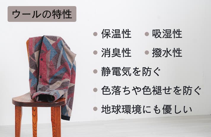 また、ウールには「静電気を防ぐ」「色落ちや色褪せしづらい」という特徴に加え、自然汚染の原因になりにくい、地球環境にもやさしい素材です。