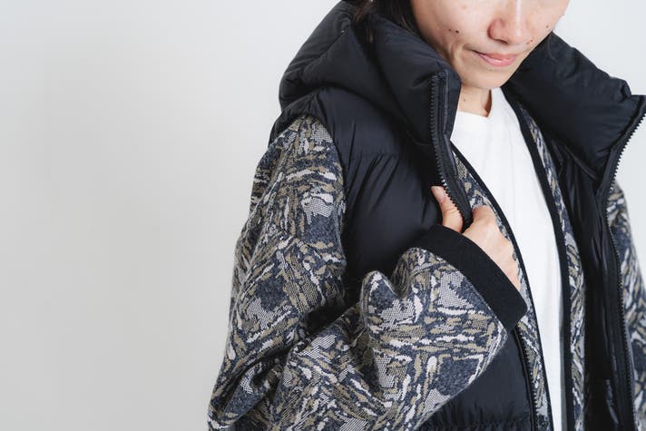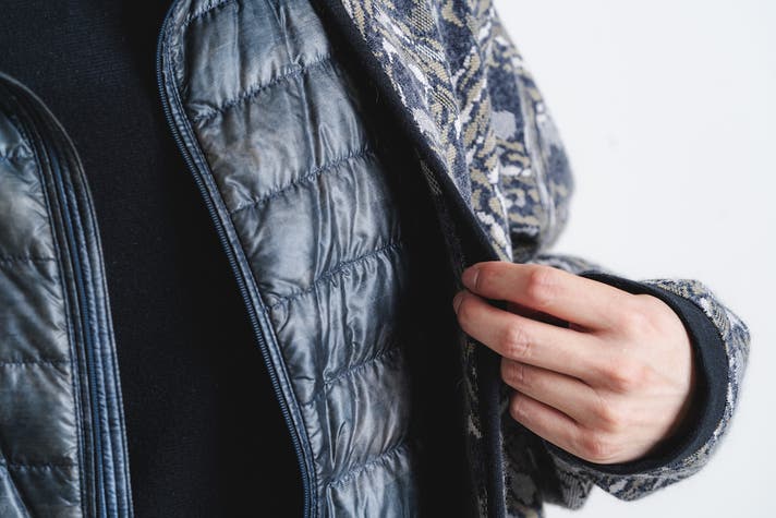 ▲ダウンの下にも着れる厚さ(※上記柄は本プロジェクトでは取扱いがございません)