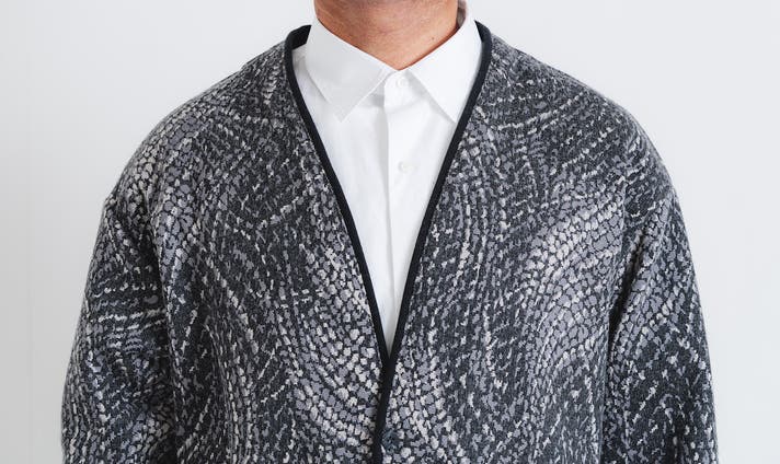 高品質・高性能の尾州ウール混生地で作る、羽織りカーディガン