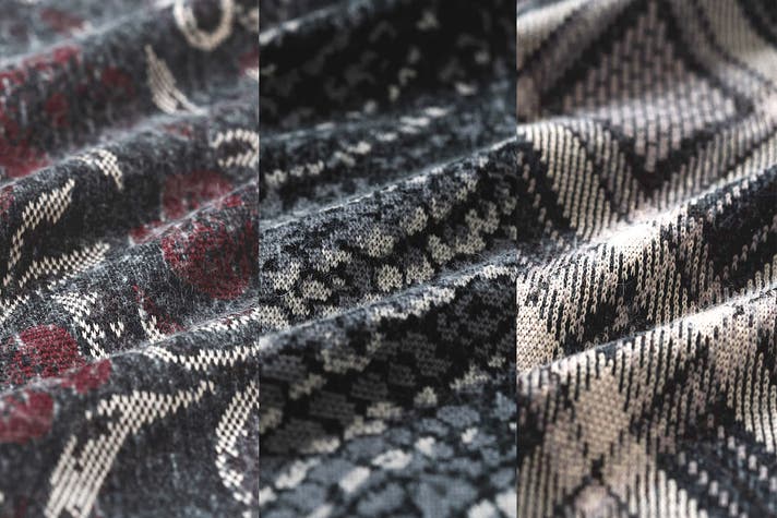 本体色:鱗ブラック・アーガイルベージュ・花グレー・幾何学レッド
