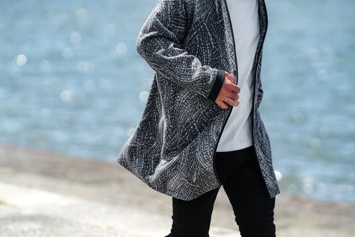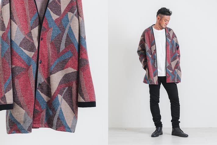 男性でも女性でも着こなせる羽織カーディガンを、世界3大ウールの1つ【尾州ウール】で作りました。