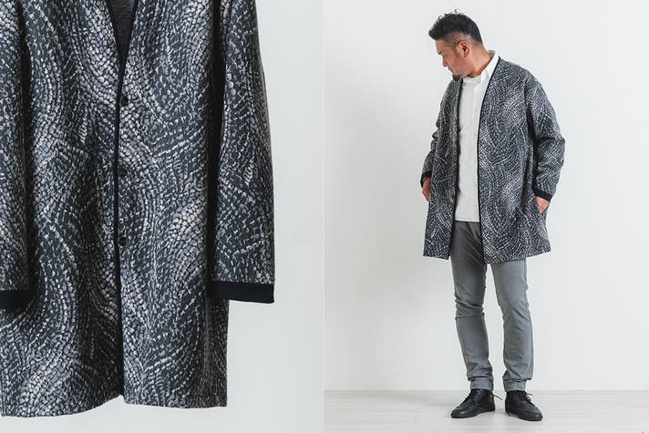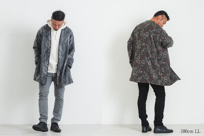 落ち着いたトーンなので男性でも羽織りやすい。なかなか見ない柄で職人のオリジナリティを感じる、お洒落なパターンが好みの方に。