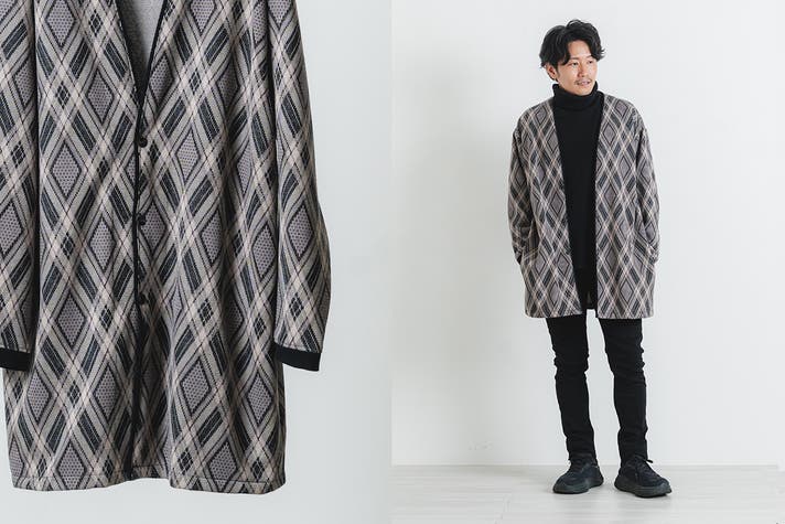 【早割】尾州ウール羽織りカーディガン(モダンアーガイル)1枚