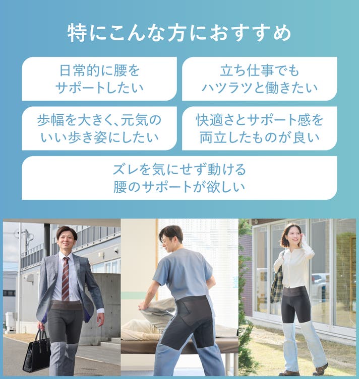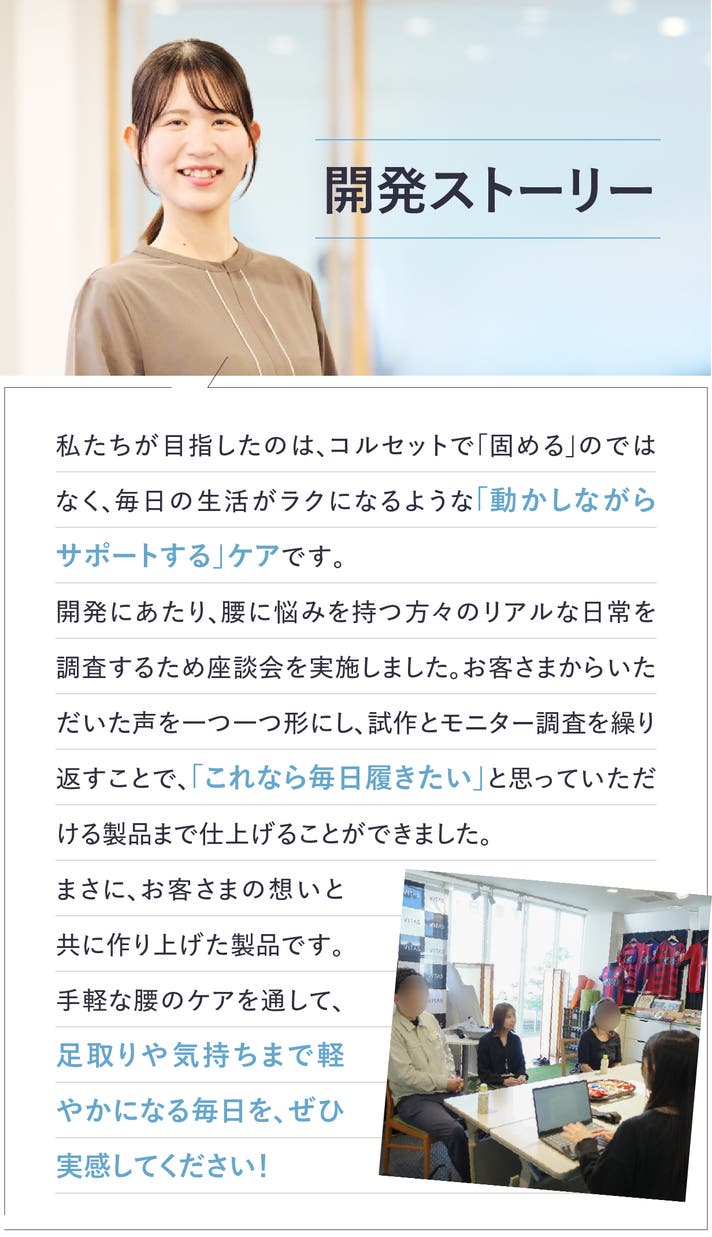 程よい圧迫力で腰の負担軽減!着続けられる気持ち良い圧迫感