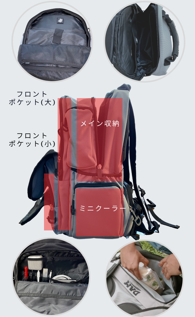 今週末は家族サービスで、公園に遊びに行ってランチしようと計画しているんですけど、荷物をひとつにまとめられるので忘れ物もないし、全部の荷物を自分が持てるんで妻もラクなのかなって思っています。こんな感じで。