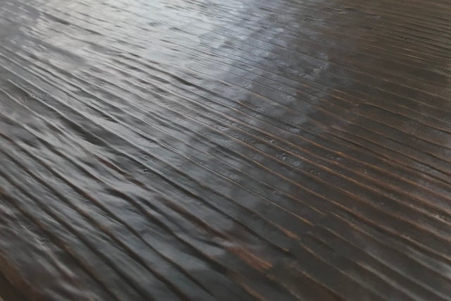➋ 木目に沿ってダメージ加工を施し、風化した木材の様な自然な凹凸のある表面を作り、その独特な風合いが DamageWood(ダメージウッド)の特徴。