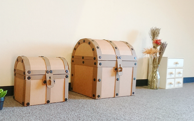 ダンボール宝箱(中サイズ、小サイズ)の組立キットです。