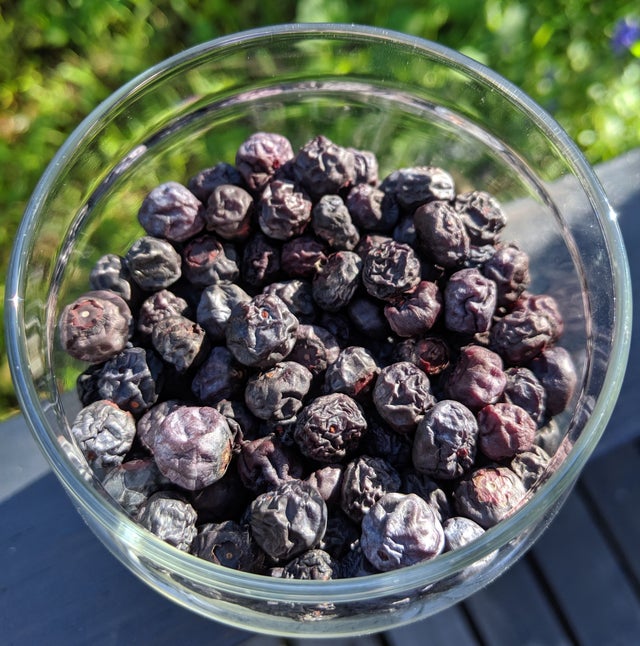 (我が農園でとれた ブルーベリーを機械乾燥と天日干しでセミドライまで加工いたします。)