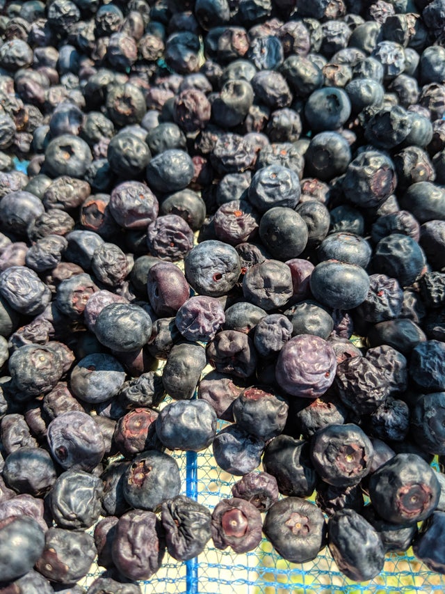 ブルーベリー乾燥の途中