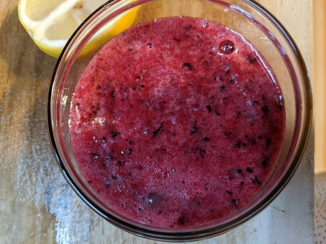 新鮮な摘みたてブルーベリー果実を80グラムほど投入し、