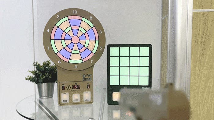 A. LED照明などが直接DartShotComboの盤面に当たると誤作動する場合があります。その場合は盤面に直接LED照明などが当たらないように、置き場所を調整してみてください。なるべく暗い環境の方がイルミネーションをよりはっきりと視認できますので、暗い環境でのご使用をお勧めします。