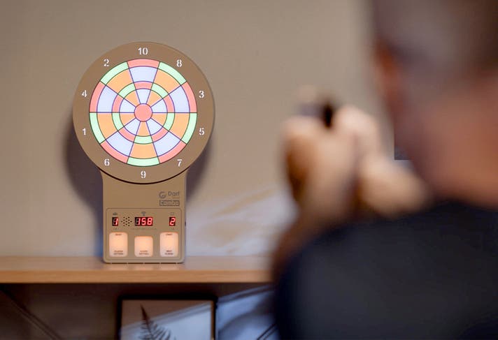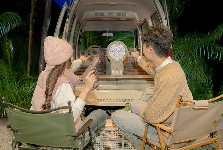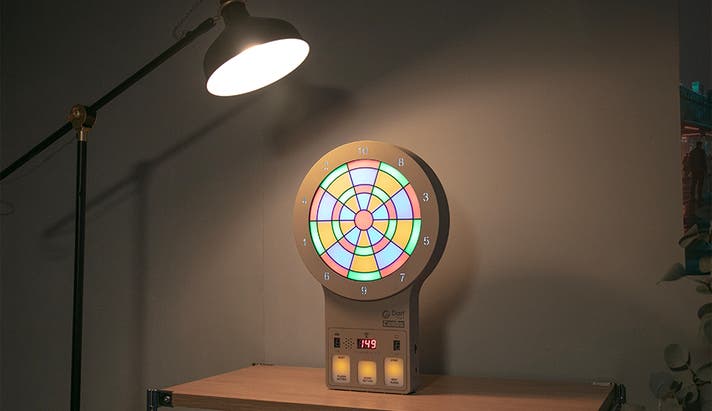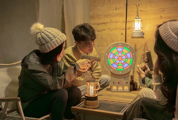 ターゲットの発光ギミックが、暗い部屋でも鮮やかに映えます。まるでインテリアライトのように、プレイ中はもちろん、鑑賞しても楽しめます。