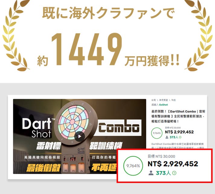 ◉プロジェクトに関する情報 ・プロジェクトの属性:輸入商品 ・代理店によるサポート:商品到着日から1年間保証 ・プロジェクト実行者(国) :日本 ・製品者(国):台湾 ・製造者(国):台湾 ※本文中に記載させていただいたスケジュールは、あくまでプロジェクト公開時点の予定です。応援購入の性質上、配送遅延のおそれがございます。 ※並行輸入品が発生する可能性があります。正規以外での個人輸入等は、完全に防ぐことができない場合がございます旨、予めご了承のほどお願いいたします。 ※並行輸入品は正規代理店による製品保証を受けることができません。また正規代理店を通じて購入することで、日本国内での流通に必要な各種認証の取得や、関税の適切な処理が担保されます。 ※一部国内に類似品が出回っている場合がございます。弊社では他社の類似品に関してのお問い合わせには対応できませんのでご了承ください。 ※原則として、配送遅延に伴う応援購入のキャンセルはできませんが、リターン配送予定月から3ヵ月を超えた場合には、希望者に限りキャンセルにて対応させていただきます。 ※商品到着日から1年以内に初期不良や、DartShotCombo本体及びLaserGunを通常の方法でご使用されていて不具合が発生した場合、無償にて修理、交換いたします。尚、付属品( AC アダプター等)は初期不良品以外は対象外となります。 ※モニター環境によって、画像の色が実物と異なって見える場合がございます。 ※開発中の製品につきましては、デザイン・仕様等が一部変更になる可能性があります。 ※以下のように商品の再配送または転送となった際は、着払いでの配送となりますので予めご了承ください。 -商品を受け取らなかった -住所に誤りがあった -住所変更を事前に連絡しなかった ※本プロジェクトはアンコールプロジェクト(*)の実施可能性があります。 (*)アンコールプロジェクトとは、実施したプロジェクトが好評だった場合において、当該プロジェクトが終了後に再び数週間から数ヶ月程度実施するプロジェクトを言います。 アンコールプロジェクト実施の場合、本プロジェクトとアンコールプロジェクトで同じ配送月を設定する可能性もございますが、本プロジェクトのサポーターを優先して配送いたします。 プロジェクトページに記載している内容に変更がある場合には活動レポートなどで共有を行っていく予定です。 手に取ったみなさまに喜んでもらえるよう、チームメンバー一同心を込めて対応していきますので、応援よろしくお願いします。